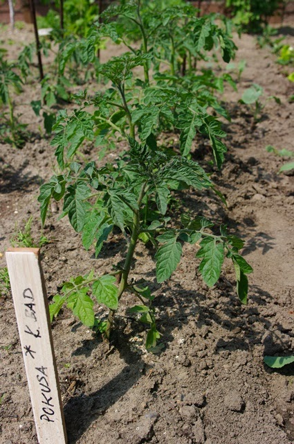 Ale że fasola ZAWSZE mi się udawała, więc martwiłam się raczej pro forma. Kiedy z pierwszymi cieplejszymi dniami rozpoczęłam hartowanie nic nie zapowiadało katastrofy. Młodziutka sałata szła na pierwszy ogień, czyli od razu na talerz – takie nietypowe przerywanie siewek. Bób w marcu wysadziłam do ogrodu – rósł pięknie. Pomidorki przesadzałam do coraz większych doniczek, w końcu wysadziłam na grządkę, ale zabezpieczyłam przed przymrozkami – pomidory z Kącika Badawczego cherry Pokusa – też bałam się, czy przetrwają, bowiem w poprzednim sezonie większość pomidorów sczerniała i opadła. Ale Pokusa i inne pomidorki rosły jak na drożdżach, między nimi zaś koper.